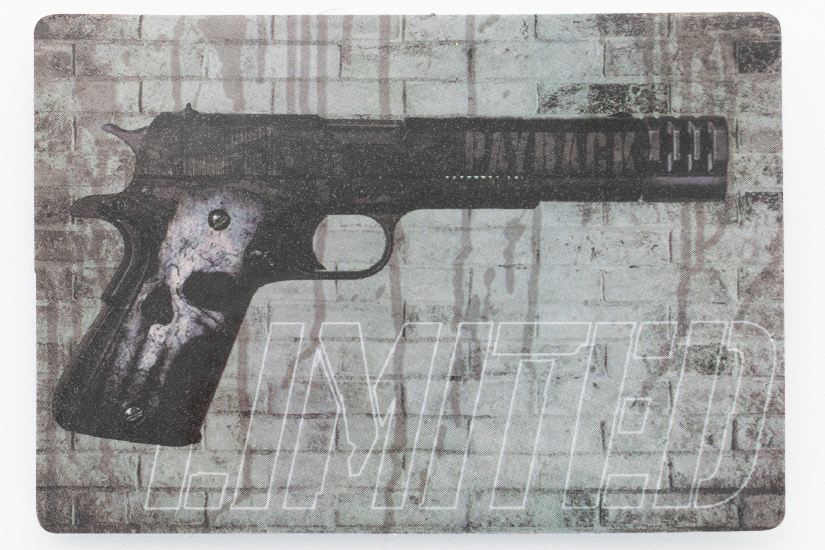 Payback is one of the UV printed limited edition models. GoatGuns didn't have any creative pitch to sell it to you, just the shiny gold box to catch your eye. This is the second 1911 model that comes with a compensator in the box.