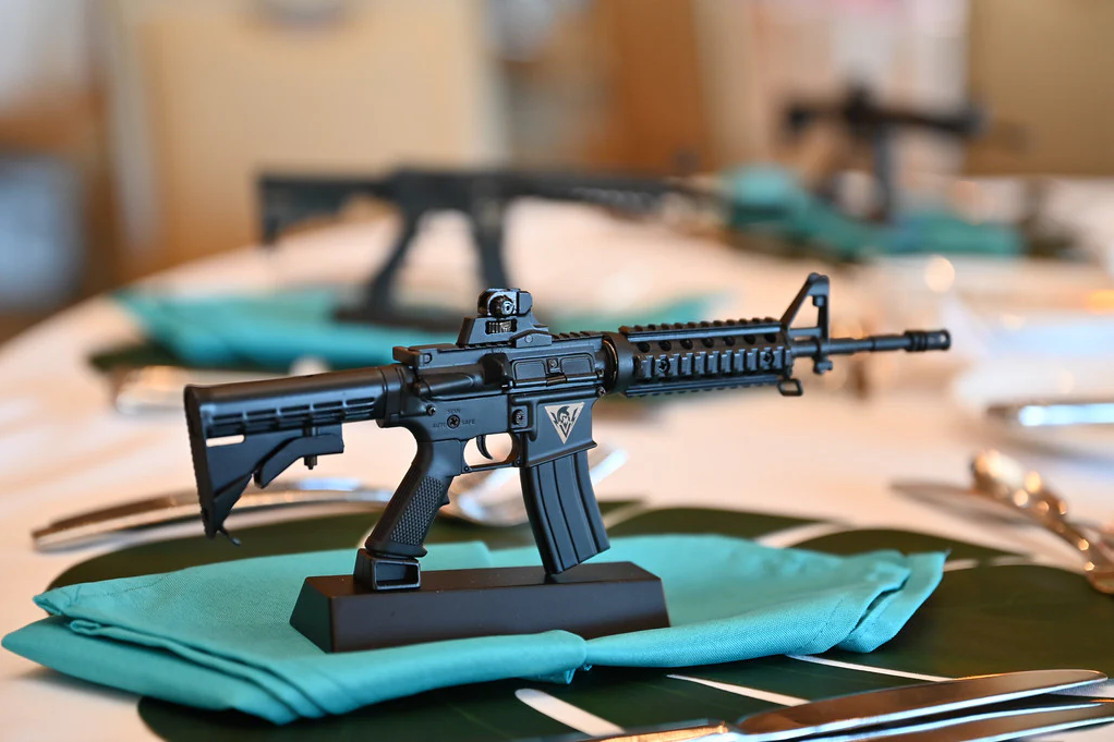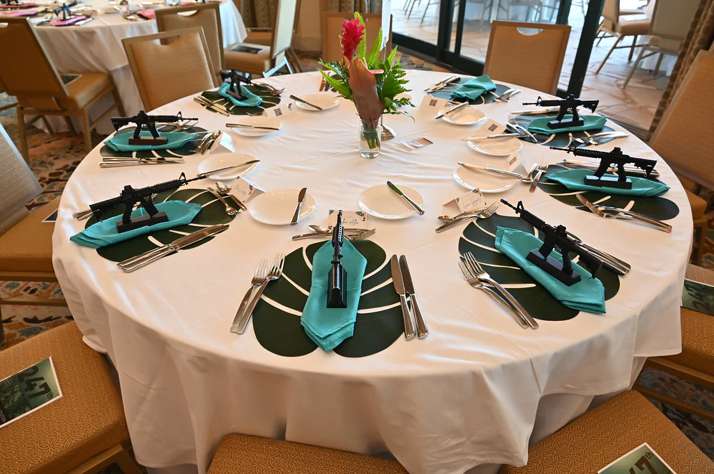 The second variant is probably the rearrest, In October 2022 Sarge was invited to attend a Marine Ball at the Marine Corps base in Mokapu Hawaii. The team brought with them 300 Charky models each with the base logo printed on the right side of the magazine well. One of each model was placed for each Marines assigned seat. As far as we know those 300 are all that exist, and the only way to get one was to be in attendance that night or be lucky enough to have one of those marines, gift or sell it to you.